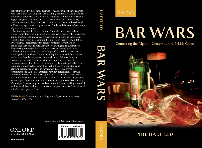 “…Phil Hadfield is a prolific and highly engaging writer on Britain’s night-time economy...Bar Wars is a highly recommended tour-de-force…Hadfield systematically unpicks the minutiae of the historical, social, cultural, economic and legal forces which have shaped our contemporary urban spaces at night, and opens up intellectual space for further critical engagement with the consequences of, and possible alternatives to, the commercialisation of British high streets...As public health and public order concerns around British alcohol consumption continue, carefully researched, theoretically innovative, considered accounts of Britain’s night-time economy such as Bar Wars are much needed by those seeking to understand how we find ourselves in this drink-sodden, vomit-splattered mess, and how we may, if not get out of it, at least minimise its harmful effects”